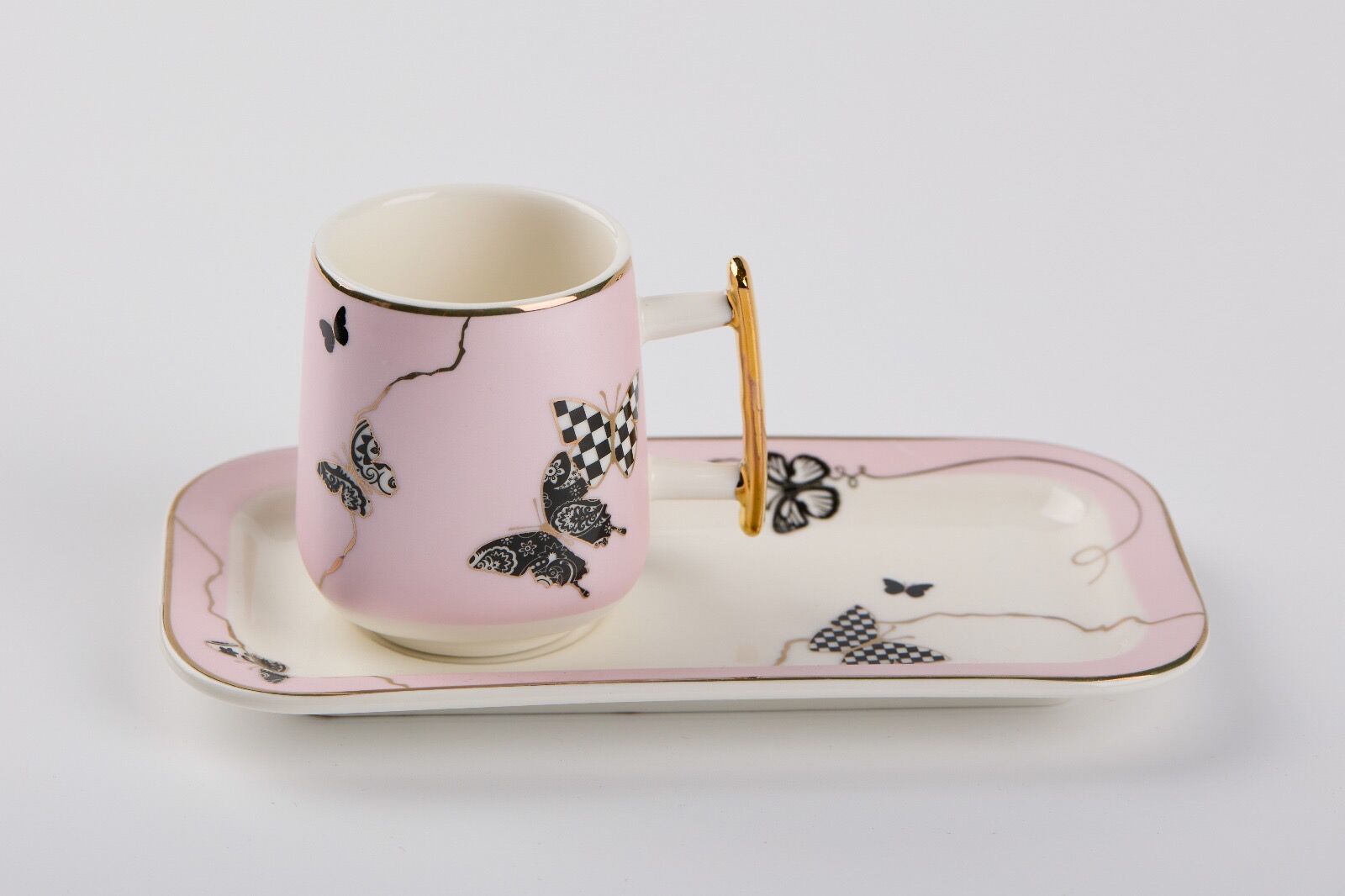 6 kişilik kelebekli sunumlu fincan seti Pembe