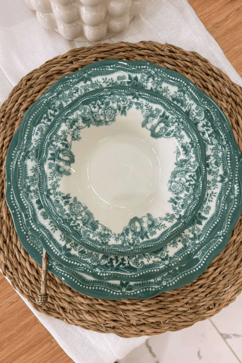 24 Parça Porselen Yeşil Çiçekli Vintage Yemek Takımı