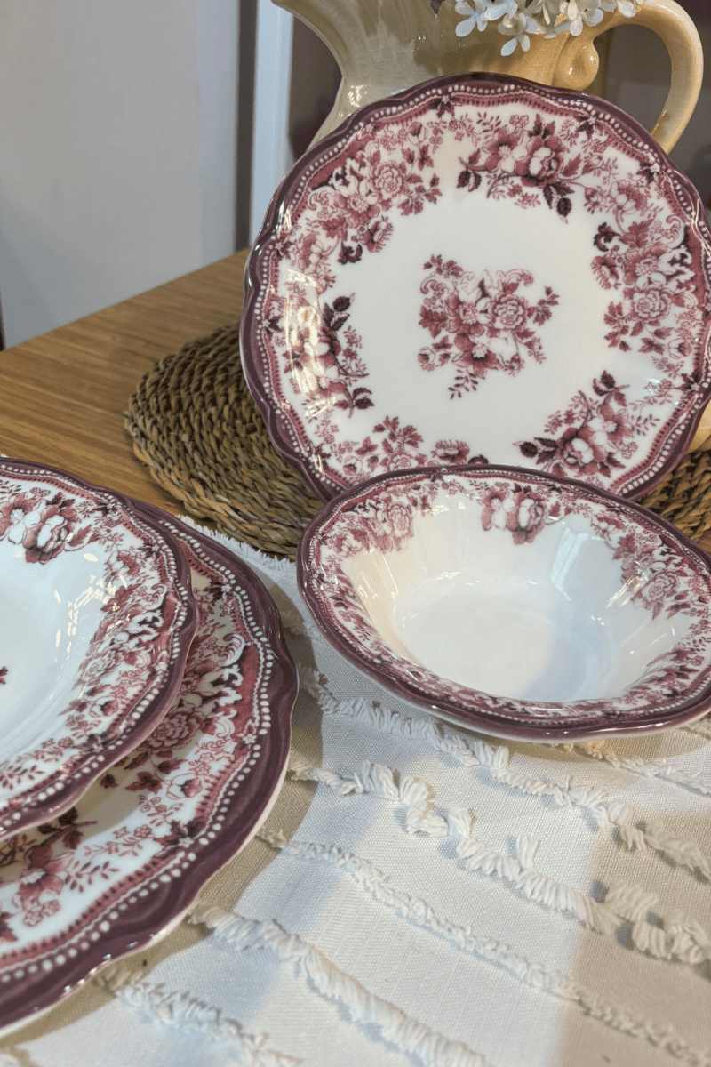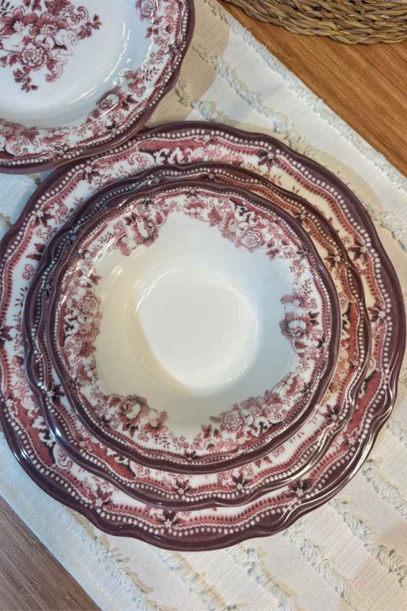 24 Parça Porselen Pembe Çiçekli Vintage Yemek Takımı