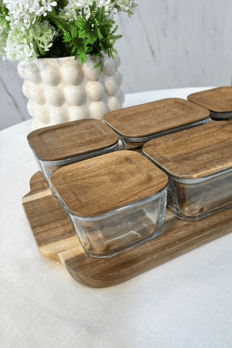 7 Parça Akasya Tepsili Vakum Kapaklı Kahvaltı Seti – Az Yer Kaplayan Pratik Tasarım
