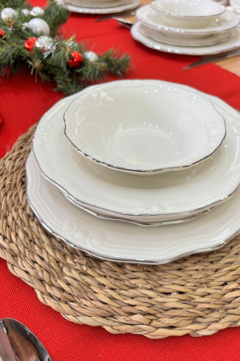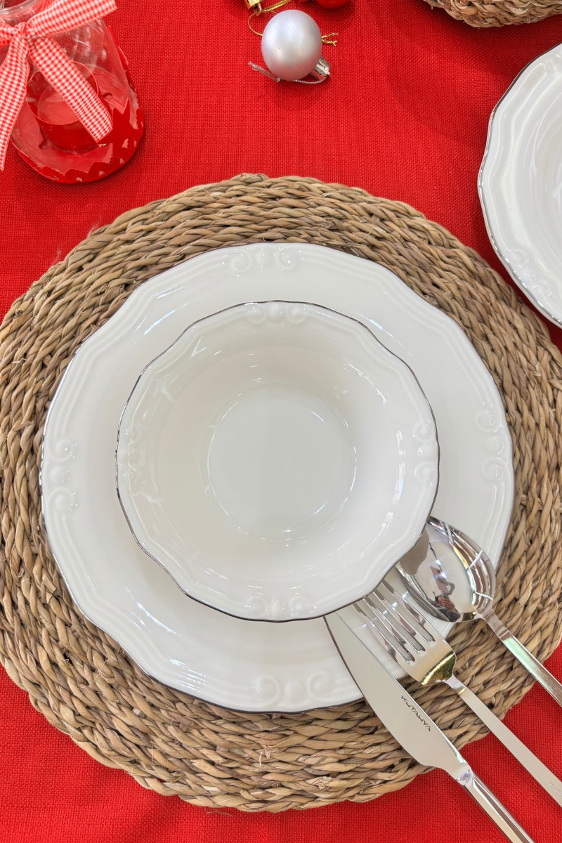Royal White Elegance Porselen Platin Yaldız Yemek Takımı 24 Parça